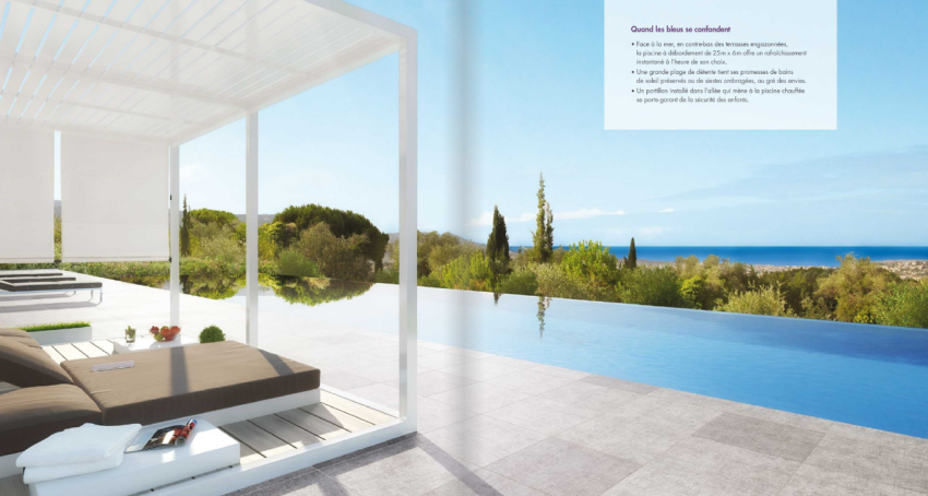 Piscine à débordement de 25m de long avec plages ensoleillées, court de tennis et practice de golf privés sur le domaine, salle de fitness et sauna réservés aux résidants pour un agrément quotidien.